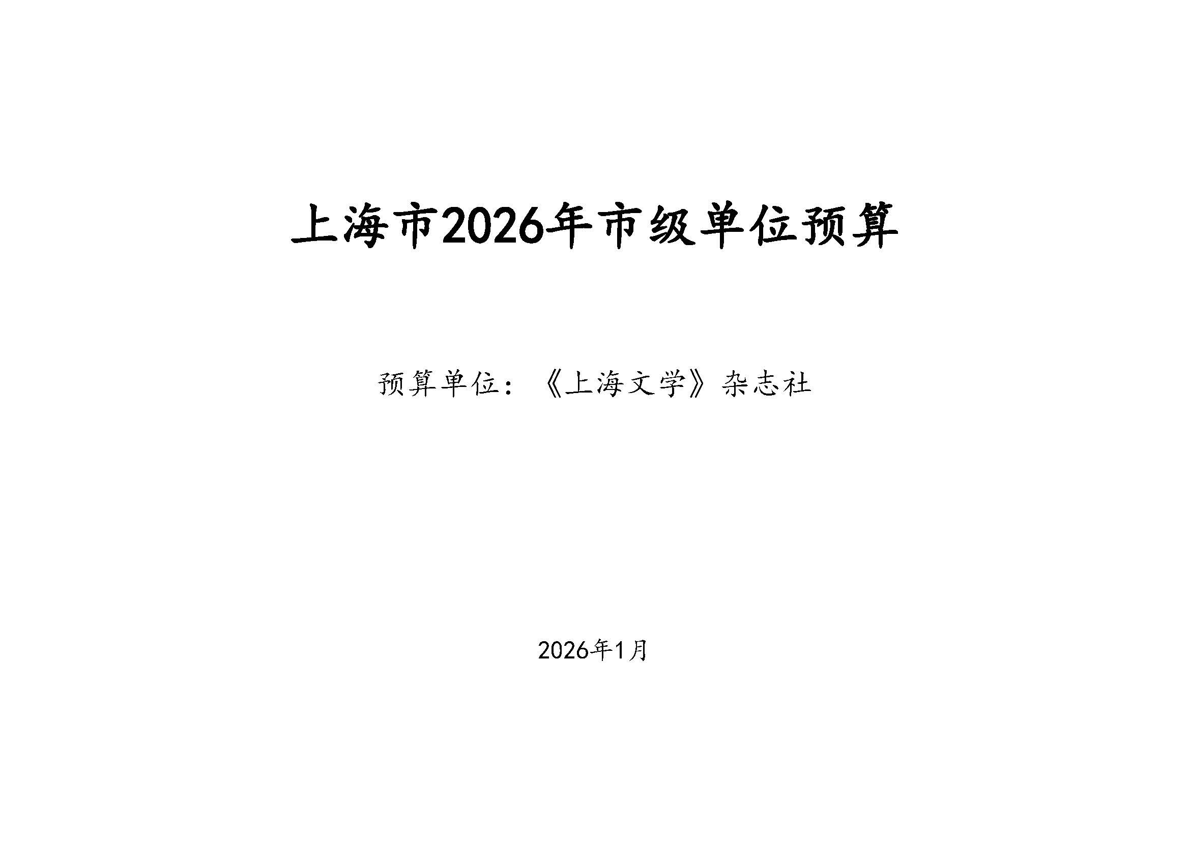 《上海文学》杂志社2026年度单位预算