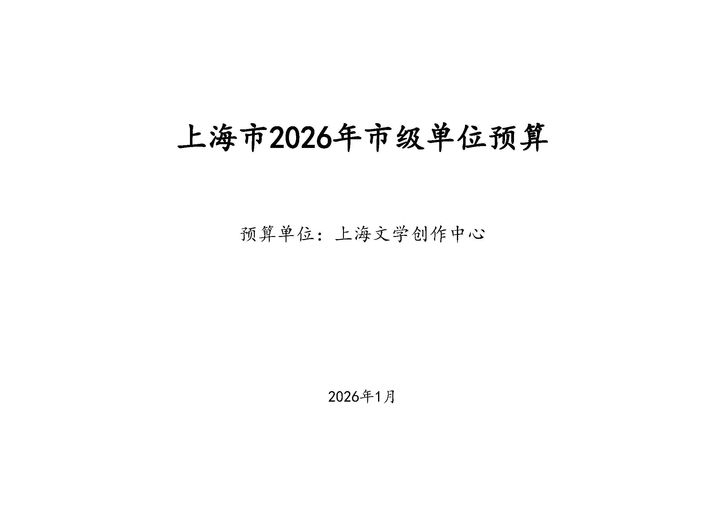 上海文学创作中心2026年度单位预算