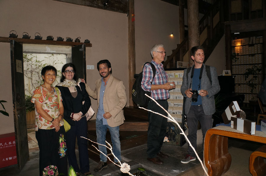 古典的摆件、中式传统的家具引起了驻市作家极大的兴趣,他们不断的询问这些古色古香家具材料来源、雕花寓意,试图从家具中了解中国传统。随后,好客的主人还给远道而来的客人们泡了武夷白茶、杭州龙井、云南普洱茶,让作家们大呼过瘾,并学着品茶和欣赏茶艺。